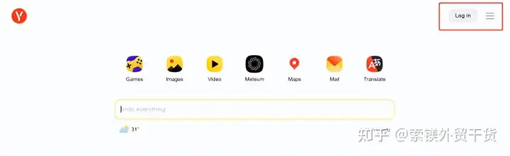 1.浏览器打开http://yandex.com,点击右上角log in